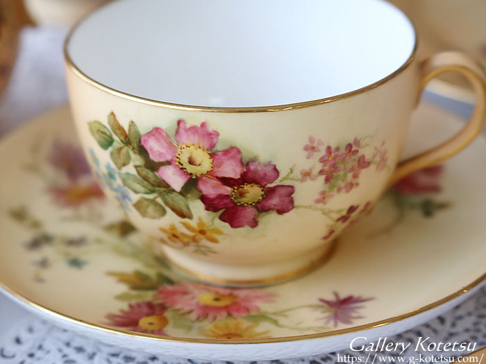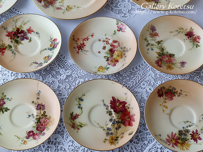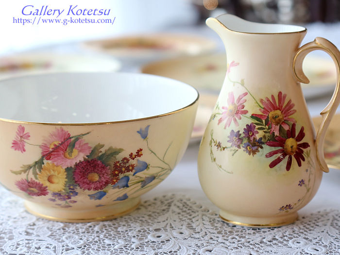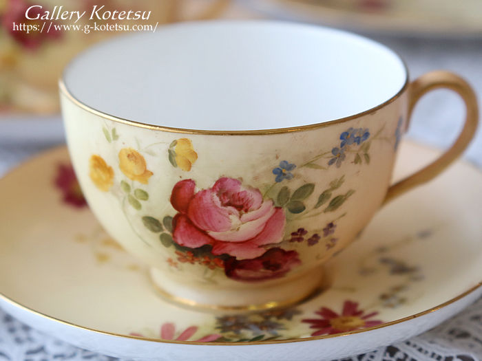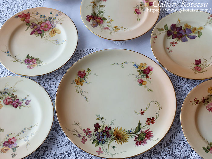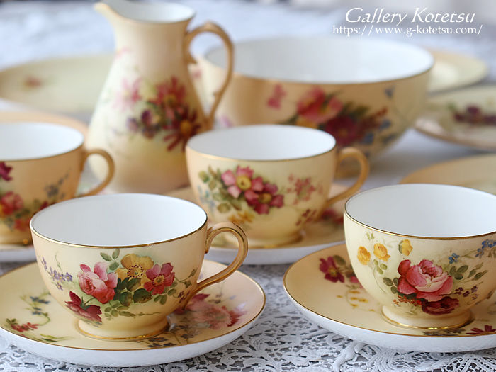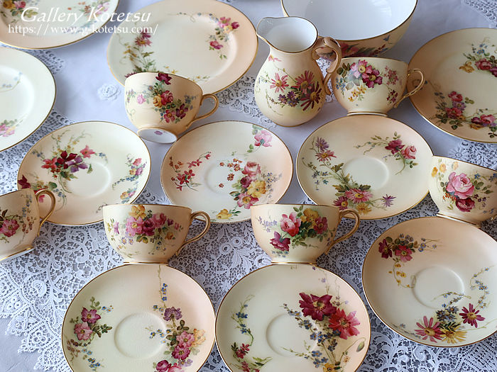 ロイヤルウースターのティータイムセットです。ティーカップ&ソーサーに180mmのゆったりデザートプレートが揃えられ直径230mmのサーヴィスプレート一枚と大き目サイズのシュガーボウルにミルクジャグが合わせられた6名用のティータイムセットです。ロイヤルウースターお得意のブラッシュアイボリー地に浮き上がるイングリッシュガーデンフラワーをウースターのペインター達によるナチュラルで愛らしい表情豊かに描かれています。ティーカップの内側の白磁と花々を描いたナチュラルベージュの優しい質感が指に触れた時にもしっとりとした感触を感じさせられます。英国流のガーデンティータイムをイメージしたセッティングでしつらえませんか。