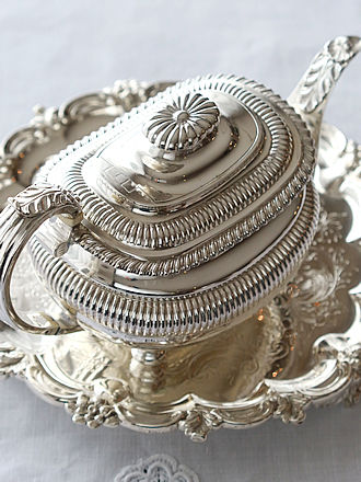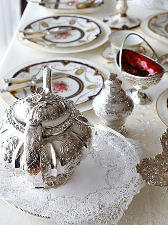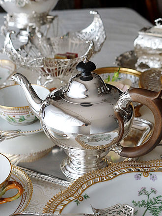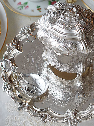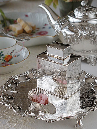 英国ジョージアン時代にドラムスタイルとして一世を風靡しました スタイルをヴィクトリア時代にオーダーされたティーポットです。 ロンドン1882年にシルバースミスCharlesStuartHarrisが 手掛けましたバチェラーサイズの容量300ccのティーポットです。 マイセンのシノアズリーティーカップを合わせ中国茶はいかがでしょうか。 フレンチシルバーのドラジェリエに中国茶に似合うスィーツを合わせ 大雪の後の後遺症をゆるりと癒します。 虎徹への行き帰りを近道を使えず、ぐるりと幹線道路をまわりながら 雪道に埋まらないように通っていますが、今日も気温が高くなり雪道が ぬかるみ?状態です。
