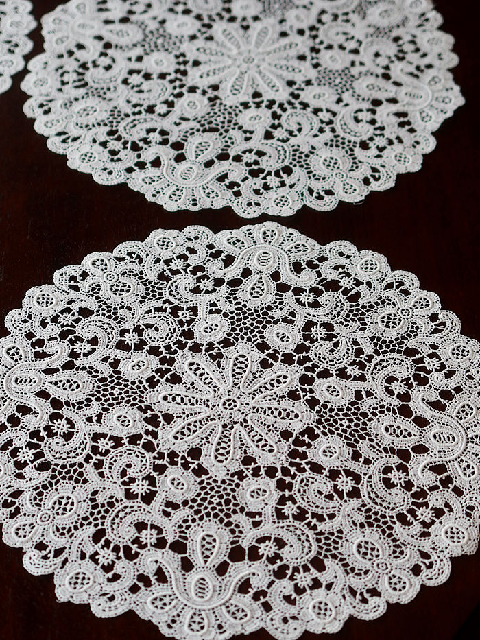 ニードルレースで中心の花びら文様からペイズリー紋様を重ねた中にアルメニアレースレースの糸を結ぶ円環紋様へと広がりを持たせた緻密な技法が魅力的です。