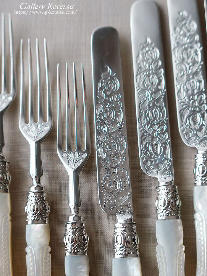 年代 : 1881年 / バーミンガム Size : L 204mm, 42g(Knife), L 172mm, 31g(Fork)