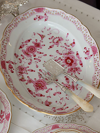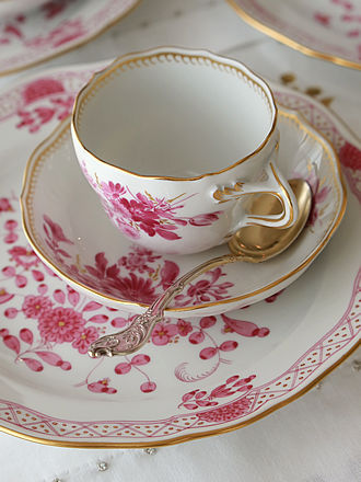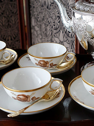 9月にご紹介します「エリザベート皇妃が愛したウィーンのお茶」を辿る なかでハプスブルク家の 「王宮銀器博物館」に所蔵されています 古伊万里のほとんどが伊万里焼の収集家であったマリア・テレジアの義弟 カール・アレクサンダーが収集した品であることを改めて知りました。 ハプスブルク家の「王宮銀器博物館」に所蔵し収集品として展示されています。 そのことからも日本との繋がりを調べますと1718年「オーストリア・東インド 会社」の 商船「オイゲン公号」がハプスブルク帝国旗をなびかせアジアへと 航路を進め1869年「オーストリア・ハンガリー二重帝国」と日本との間で修好 通商条約が締結され歴代皇帝の趣に応じた収集品が展示されていたことにも 納得する資料です。 二重帝国の流れからハンガリーのヘレンド製磁器もハプスブルク家では 良く使われていました。 メキシコ皇帝となったマクシミリアンもヘレンドの中国的図柄が納められていますし エリザベート皇妃専用の食器の中でもギリシャ・コルフ島の城館 「アキレイオン」 にもアジアンティックなものも納められたとの記録が残されています。 ハプスブルク家にちなみまして「朝顔のモチーフで描かれましたヘレンドの ティーカップ&ソーサー」をご紹介します。 ティーカップの口元はまるで朝顔のように開く形状が現代も作られているのかは 調べてはおりませんがご覧ください。