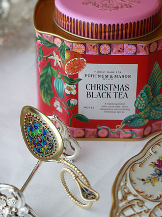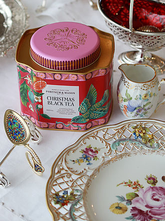 ロンドンからフレッシュアンティークとともにクリスマスに欠かせない FORTNUM&MASONのCHRISMAS BLACK TEAが到着しました。 今年の初雪はまだまだと思っていましたが、今朝! 「例年よりも二日?ほど早く手稲山に初冠雪」というニュースが 報道され昨日の穏やかな気温から一気に空気が変わってきました。 まだまだと思っていましたが、そろそろ?本格的なクリスマスに向けて セッティングをイメージアップします。 今年のF&Mクリスマスティーのローズピンクに合わせプリカジュールで 飾られたティーキャディスプーンを合わせました。 イラストの中にジャスミンの花の葉とバードの色合いがノルウエイの工房 MariusHammerが丁寧に仕上げたファンシーで宝石のように輝く ゴールドギルドで施されたクルリと巻き上げたハンドルがチャームポイントです。