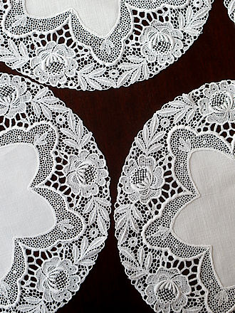 美しいアンティークレースが到着しました。 糸のマジックとも言われますニードル(針)レースの自由で繊細な 表現方法が16世紀後半から作られ、アンティークレースの様々な 技法を手にする楽しみと出会える喜びに一瞬?時間を忘れます。 という言い訳をいいながら画像&サイズ等々を確認し皆様に ご紹介します。 ホワイトリネンに刺繍を施しそのまわりを糸の芸術とも言われます ローズポワンでバードの羽根の盛り上がりからフローラル紋様の 曲線部分を浮き彫り彫刻のように精密に仕上げた美しいサシェです。 ポプリを収納した18世紀のレディのお部屋に置かれていた大切で 貴重なサシェの縁取り飾りにはプント・イン・アリアという糸のみで 仕上げたことから空中ステッチとも言われる繊細なニードルレースを 飾っています。 ハイティーorランチタイムに程よいサイズの真っ白なティーナプキン 6枚セットです。 ナプキンの縁取りをトリミングし四つ角のオーガンジーに浮き上がる 立体感を持たせた花刺繍がチャームポイントのようです。 透かした状態を目に留まるように手に持ち上げた時に「あら!」と さりげなくお目に留めていただけると思います。 ナプキンリングを合わせる時はふんわりと刺繍部分を手前に置かれては いかがでしょうか。 この他にドイリーなどなどを合わせMarcheページにご紹介しました。 どうぞアンティークレースの世界へ!