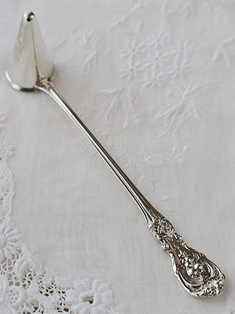 ロンドン1901年JosiahWilliams&Coが手掛けました直径283mmの ファンシーなサルヴァ そのサルヴァをぐるりと縁取られた30mm幅の透かし紋様に重ねましょうと C.1845年Viennaのマザーオブパールハンドルのアスパラサーヴァー を合わせますとサーヴァー部分の透かし紋様とサルヴァの縁取り紋様が重なる ように、とてもエレガントです。 アスパラを取り分けるサーヴィングカトラリーとしてオーダーされたサーヴァーですが タルト地のケーキ等などサーヴィングに合わせるのもオシャレです。 ハプスブルク家の皇妃エリザベートの華麗なる午後のお茶時間に合わせ たいと思っています。