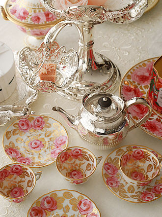すっかり落ち葉の季節になりました。 セピアローズ?と思っていましたがロイヤルコペンの “ブラウンローズ”のネーミングがついたティーカップ&ソーサー 6客セットでご紹介します。 バックナンバーの1953年&1957年を合わせた6名セットです。 その前にティーパーティーに役立つ嬉しい執事? 物言わぬ執事にダムウエイターを二段や三段からスクエアなどなど ご紹介しておりますが実際にお部屋のなかで重宝するのは トップにティートレー(ガラス面のテーブルを左右に補強されたハンドル 付き )を重ねたトレートップテーブルがひとつお部屋にあるだけで ティーセッティングの準備諸々の便利なこと。 虎徹の狭い店内でも撮影するアンティークを寄せてスペースを広々と 撮影スポットに気持ちを集中できる嬉しいテーブルです。