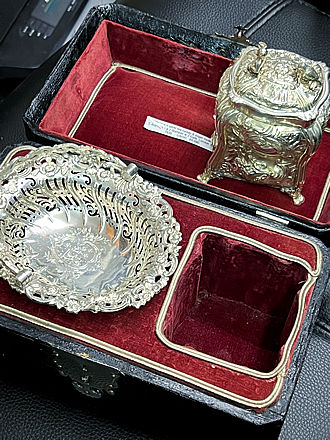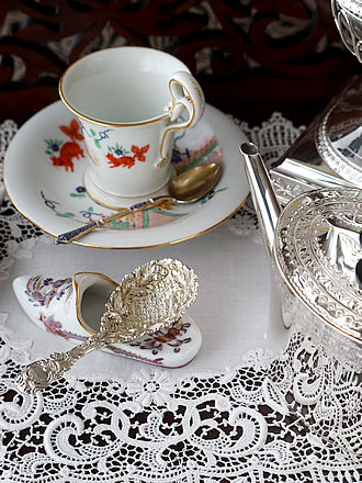 英国ジョージアン時代にドラムスタイルとして一世を風靡しました スタイルをヴィクトリア時代にオーダーされたティーポットです。 ロンドン1882年にシルバースミスCharlesStuartHarrisが 手掛けましたバチェラーサイズの容量300ccのティーポットです。 マイセンのシノアズリーティーカップを合わせ中国茶はいかがでしょうか。 フレンチシルバーのドラジェリエに中国茶に似合うスィーツを合わせ 大雪の後の後遺症をゆるりと癒します。 虎徹への行き帰りを近道を使えず、ぐるりと幹線道路をまわりながら 雪道に埋まらないように通っていますが、今日も気温が高くなり雪道が ぬかるみ?状態です。